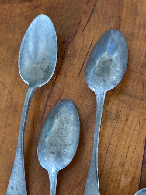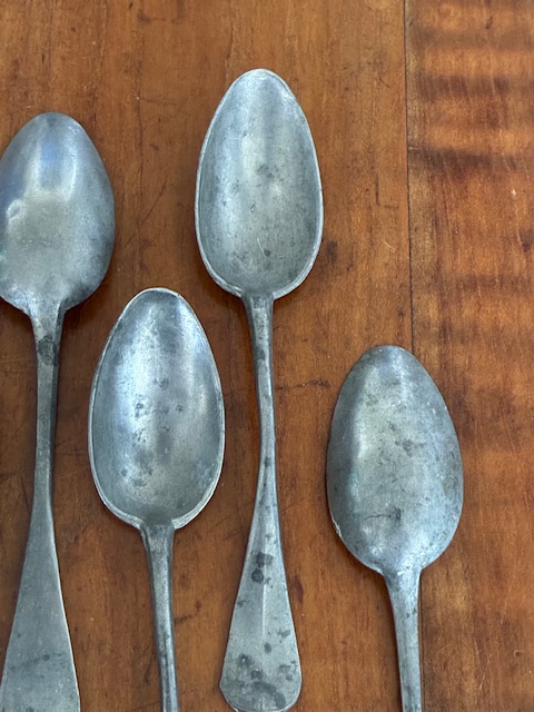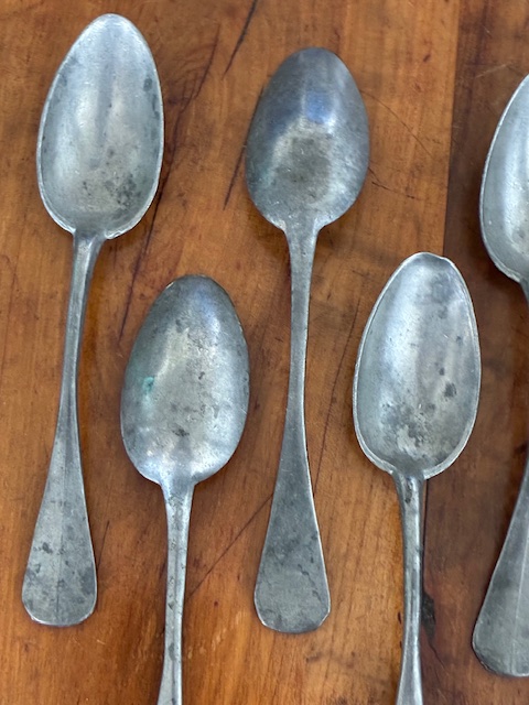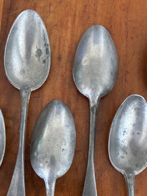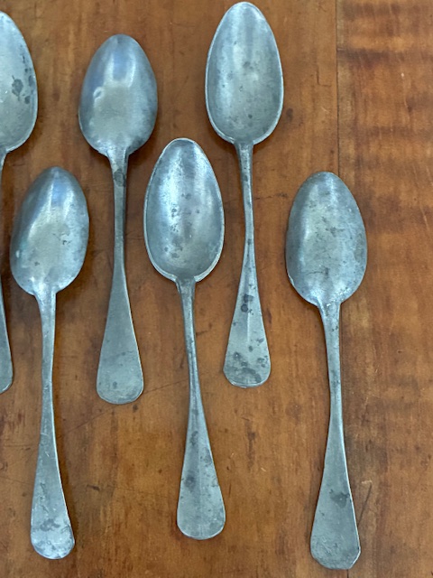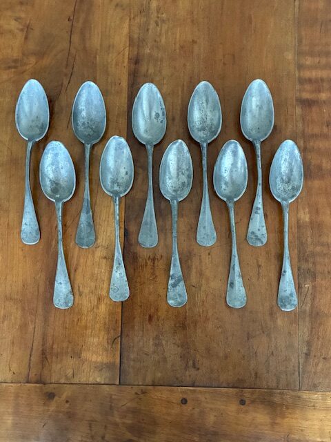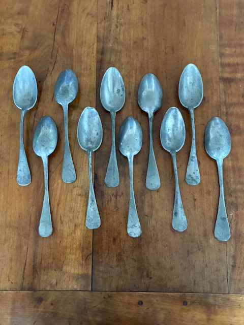 Set of 10 19th century French pewter dessert spoons.