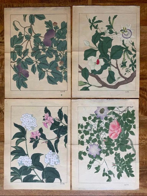 A rare collection of 18th – 19th century floral hand coloured copper engravings.