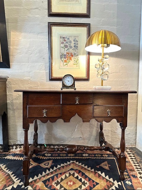 Below, Early 19th century English oak lowboy.