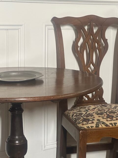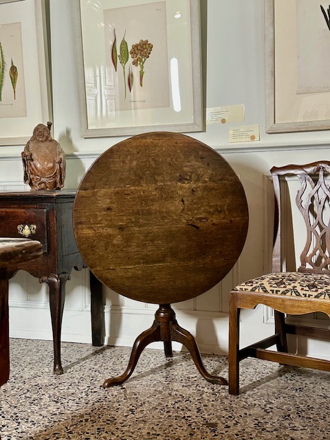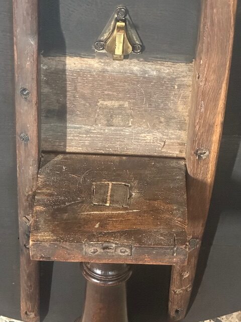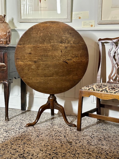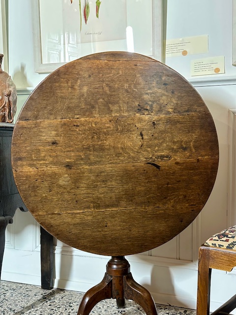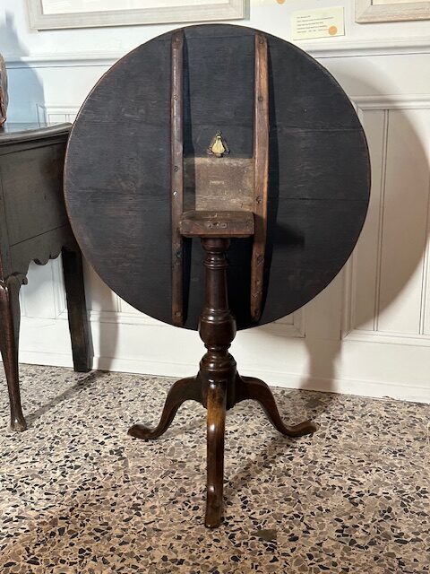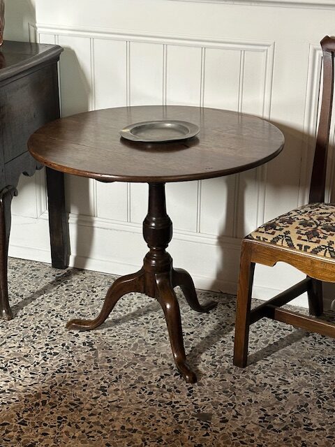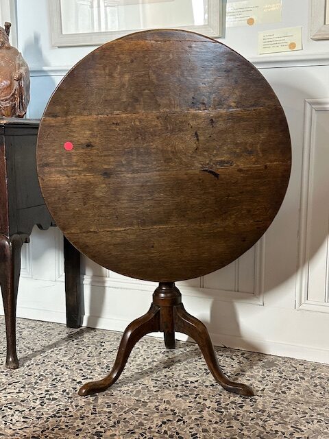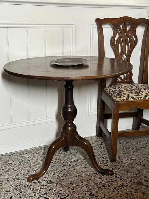 SOLD – 18th century English oak tilt top wine table.